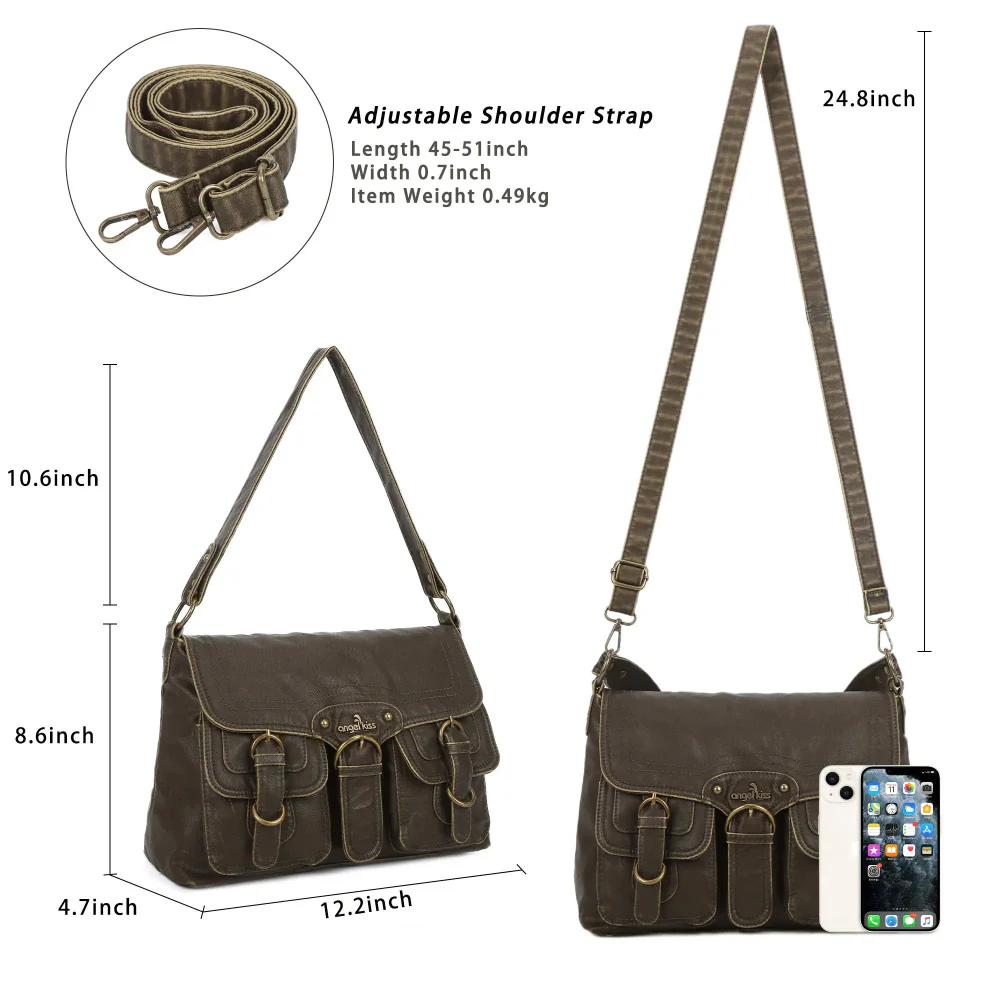 Vintage Washed Flap Shoulder Bag with Front Pockets